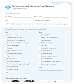 Visually document and get consent on cosmetic surgery procedures with our detailed and customizable body chart form.