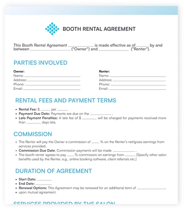 Set clear expectations and conditions for renters using this straightforward booth rental agreement template.