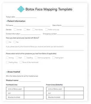 Plan precise Botox injections and elevate your consultations with this easy-to-use face mapping template.