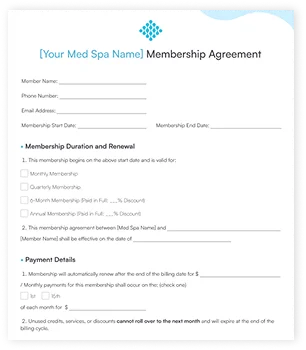 Safeguard your clinic and set clear terms and conditions with this ready-to-use membership agreement template.