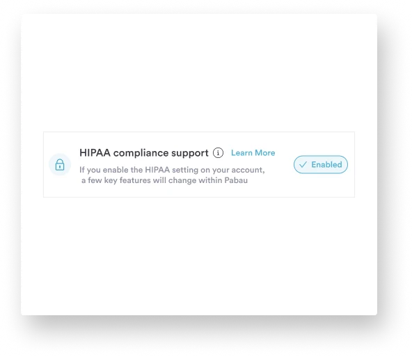 A software solution alone won’t make your business HIPAA compliant. We support HIPAA compliance with robust tools such as authorized personnel access, audit logs, and data encryption and secure storage. However, you must also implement the appropriate policies and procedures within your organization to ensure you comply with all HIPAA requirements.We also have a HIPAA compliance toggle that enables you to activate HIPAA compliance support in Pabau. Read more here: https://pabau.com/hipaa-compliance/