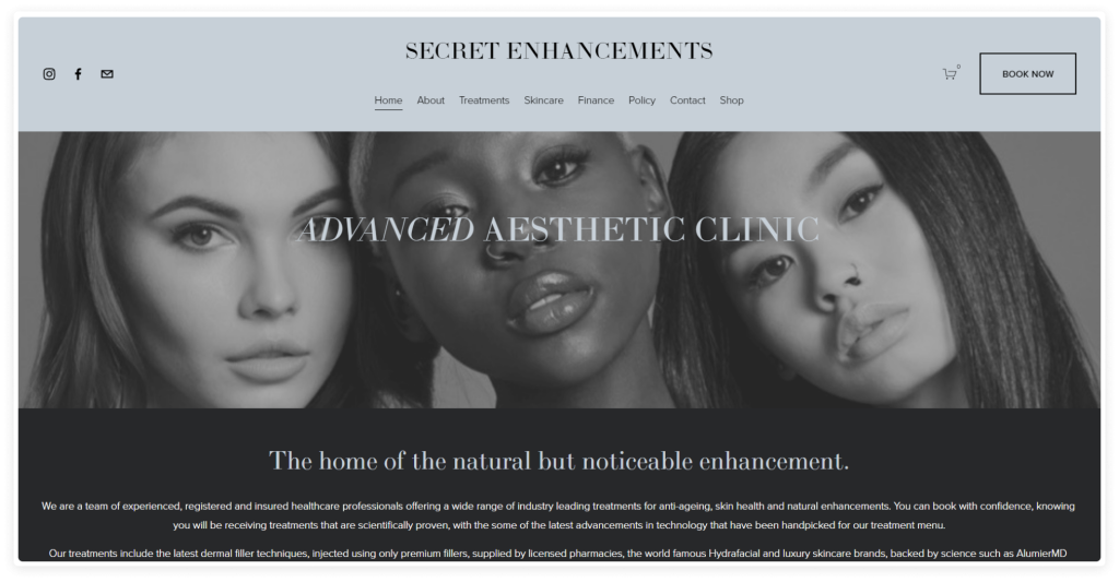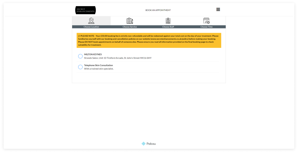 Camille also set up the online booking form on the Secret Enhancements website so that clients can log in 24/7 and book an appointment at any time of day, rather than being limited to office hours.