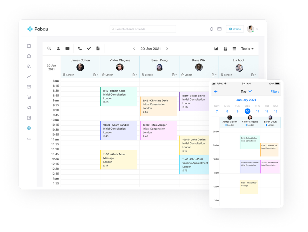 Pabau’s clear, visual layout of daily schedules helps both you and your team see exactly what’s booked in.